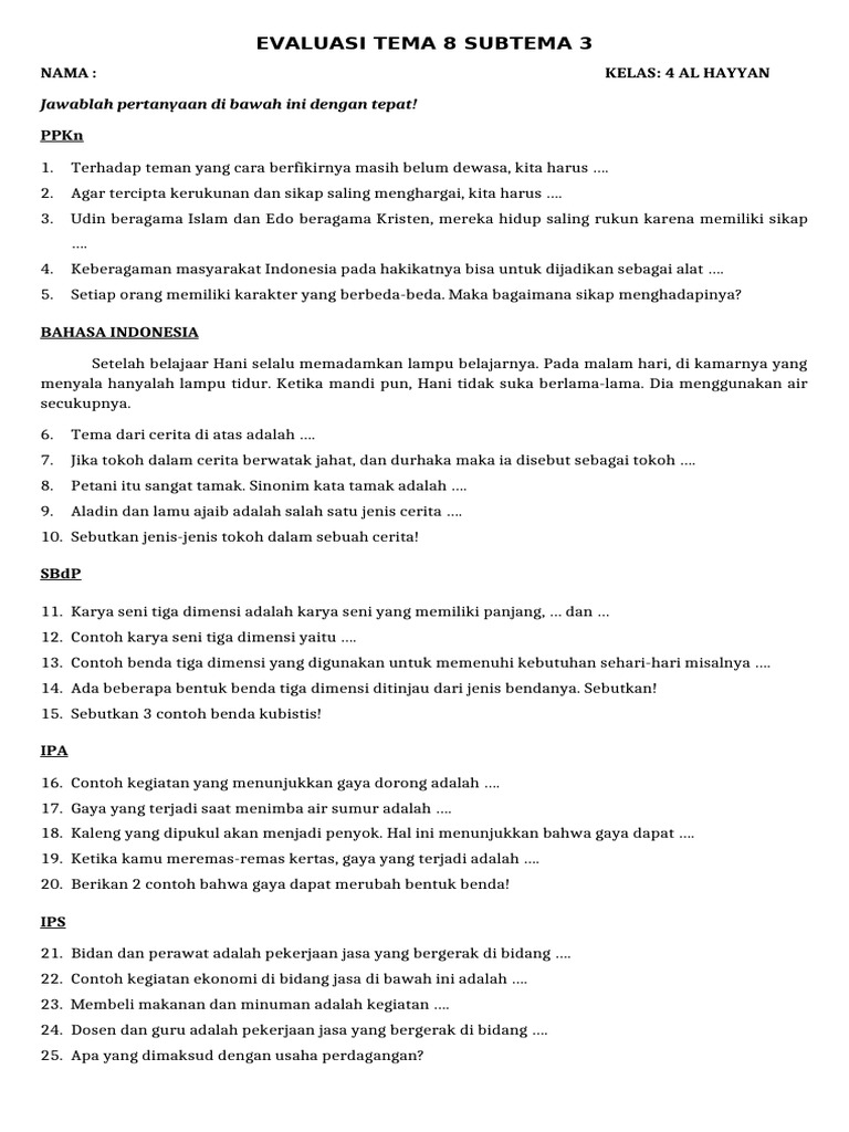 <p>Berikut adalah kumpulan latihan soal yang mencakup materi Tema 8 Subtema 3 Kelas 5.</p>